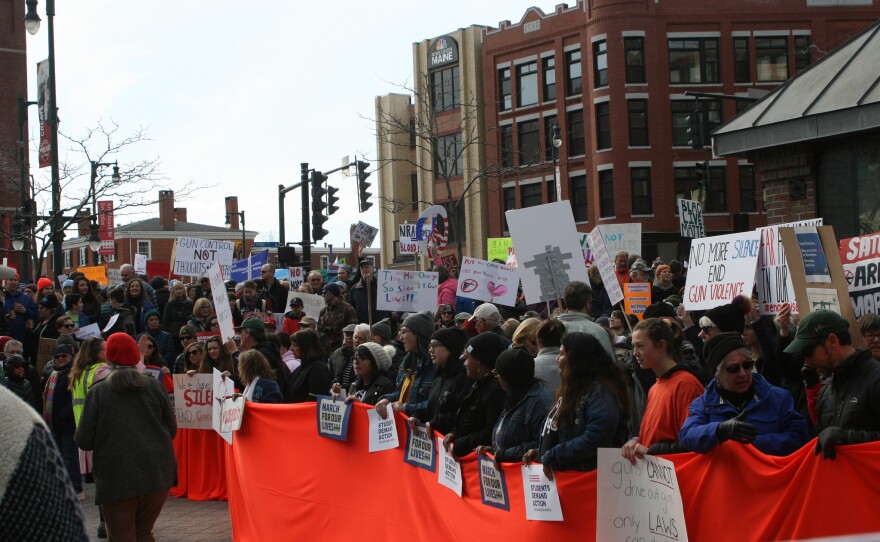 A crowd estimated at several thousand marched down Congress Street and gathered at the steps of Portland City Hall Saturday. Fired-up students, fed up with gun violence in their schools, led the crowd in chants of "Enough is enough!" and "Hey-hey, ho-ho, the NRA has got to go!"