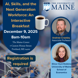 Explore new insights into how artificial intelligence is shaping Maine’s labor market. This interactive session brings together business leaders, educators, policymakers, and students for a focused discussion on AI, skills, and the future of work. REGISTRATION IS REQUIRED.