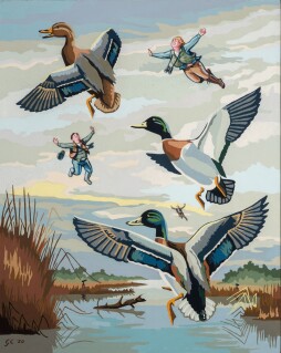 After taking a year off to complete a mural, Eliot artist Gordon Carlisle is back hosting his annual Open Studio featuring a wide variety of artwork. On display will be new oils, acrylics, watercolor paintings and prints as well as his ever popular collages and re-purposed Paint-By-Number paintings. All are priced to sell. Just look for the brightly colored sandwich board.