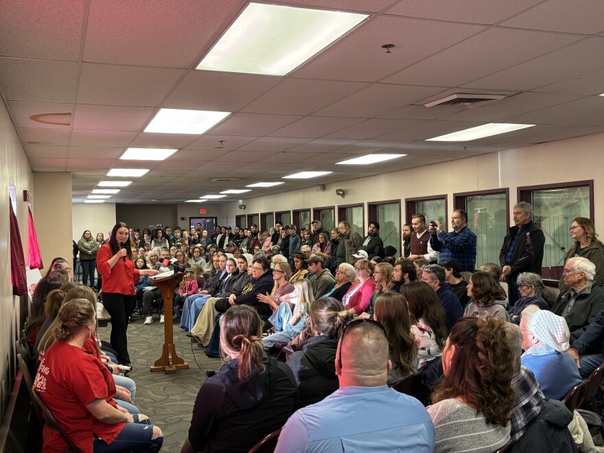 Back at the town hall, seven-month pregnant Kathryn Scott said prenatal appointments that were just minutes away in Houlton now will take several hours with the round trip to Presque Isle. Scott worries about what the loss of Houlton's OB unit will mean for the future of this rural community.