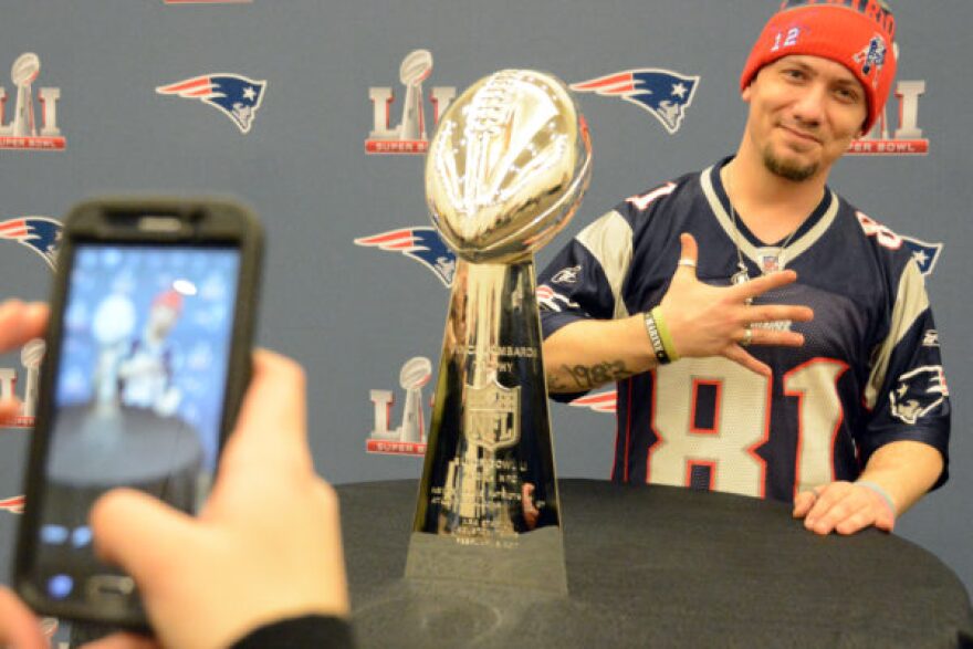 Hurlburt regained his composure afterward, saying he had come because his father was a longtime New England fan. The young Hurlburt also wanted to get a picture of the trophy for one of his teachers, he said.