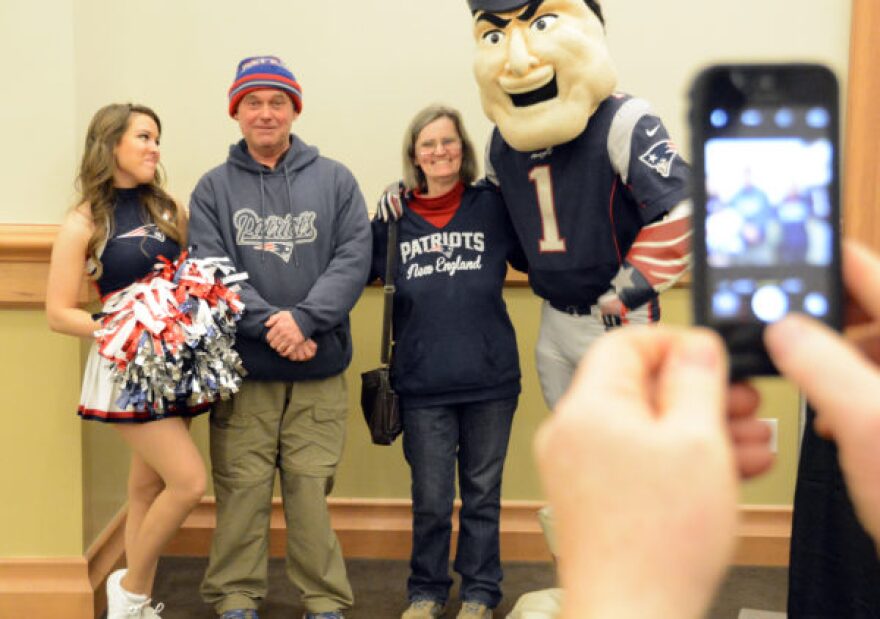 Cross Center officials said that at least 500 people got their pictures taken with the trophy, a Patriots cheerleader and the team’s mascot just hours after the crash.